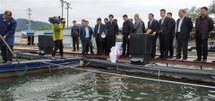 实施乡村振兴战略,水产业大有可为。10月21日,贵州省委常委、常务副省长李再勇一行莅临贵州民投集团旗下三穗县兴绿洲农业发展有限公司参观指导工作。 (李再勇常务副省长正在给鱼投食) 走进兴绿洲现代渔业产业园,一眼望去,养殖池连块成片,在冬日阳光映